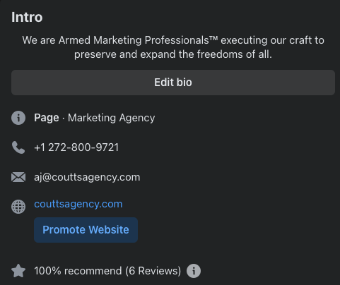 Facebook can be a minefield for 2A brands, so we keep things simple. Your bio should clearly state what your company does, nothing more, nothing less. No unnecessary fluff. Your link should go directly to your website, followed by a LinkTree that includes other key links—giveaways, promotions, or any relevant partner pages. Facebook is about driving traffic, not making sales, so we focus on engagement and brand presence.